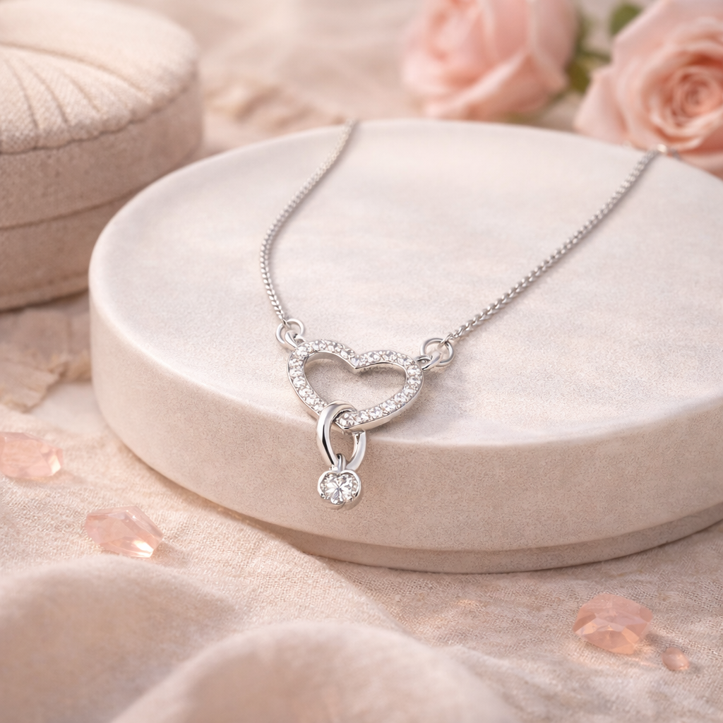 Collar Mujer Plata 925 Corazón Brillante con Circones Diseño Elegante Regalo Ideal